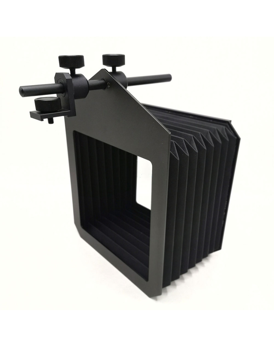 ARCA/ARCA 4X58X10 camera lens hood, suitable for 171mm models, 150x150mm square color filter can be inserted. The metal part of this hood is anodized black treatment, durable and wear-resistant. The bellows cavity has the function of self-stop, without any support, and can be adjusted from multiple angles. Will not sag, the overall light, exquisite workmanship, use more flexible and convenient!