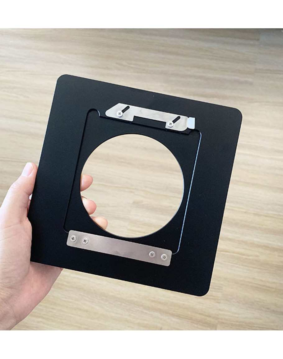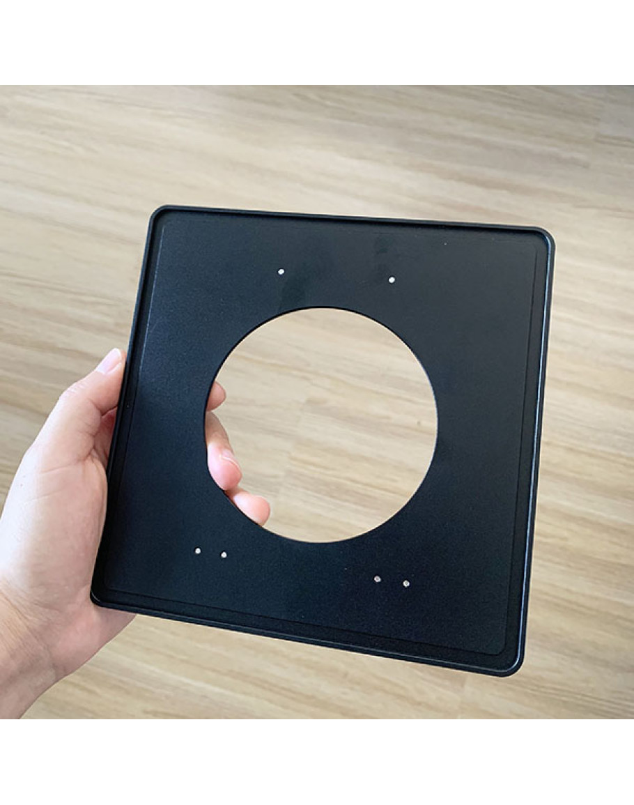 This lens board adapter allows to use 96x99mm like Linhof type lens board to be installed on Toyo Camera